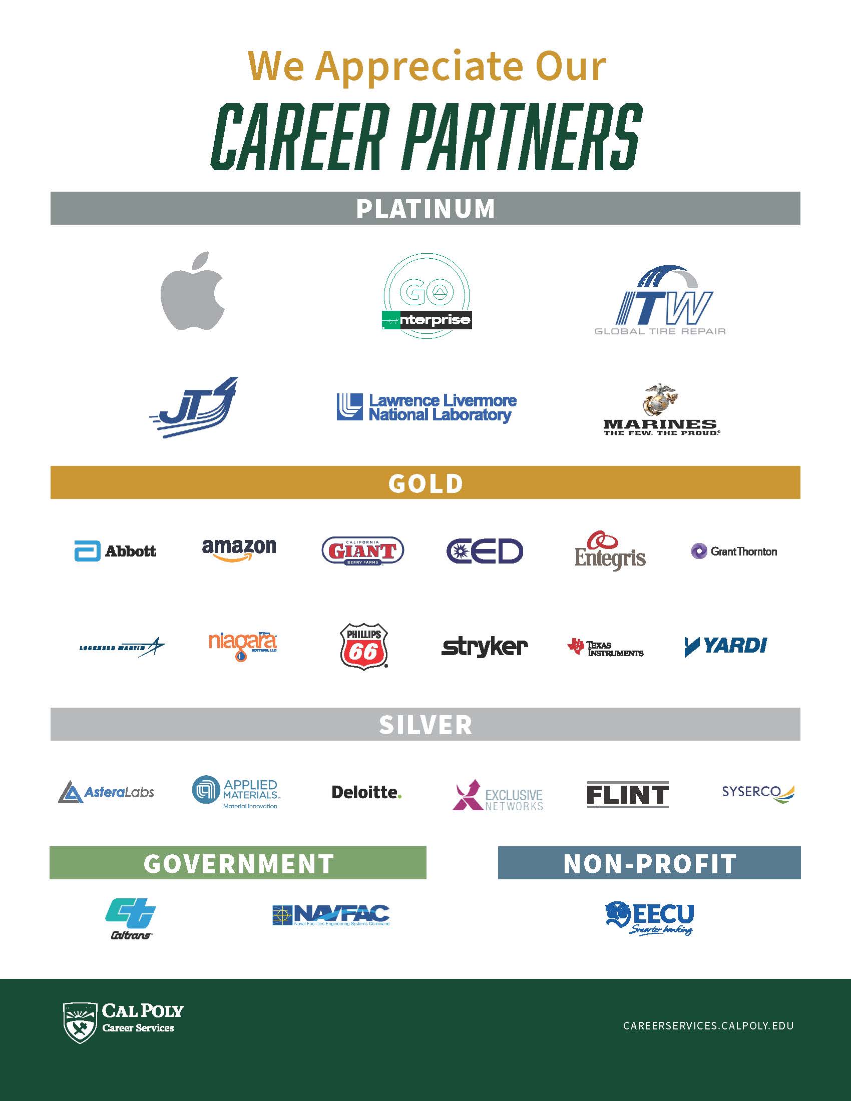 Cal Poly Career Services has opportunities for you to strengthen your company branding, visibility and relationships with the Cal Poly community. We have enhanced partnership packages that will maximize your recruiting strategies with Cal Poly talent. Additionally, we are allotting a portion of funds to diversity and inclusion programs and services for underrepresented students.